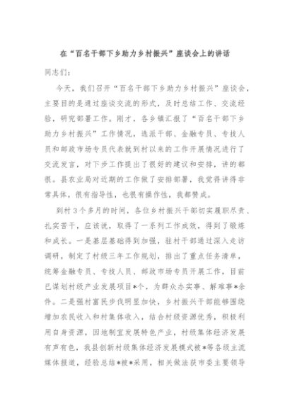 / 【七哥公文】2024年:在“百名干部下乡助力乡村振兴”座谈会上的讲话+更多免费公文+VX:QiGeGongWen2024