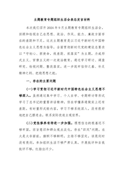 / 【七哥公文】2024年:主题教育专题组织生活会表态发言材料+更多免费公文+VX:QiGeGongWen2024