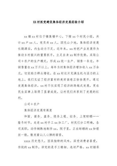 / 【七哥公文】2024年:XX村抓党建促集体经济发展经验介绍+更多免费公文+VX:QiGeGongWen2024