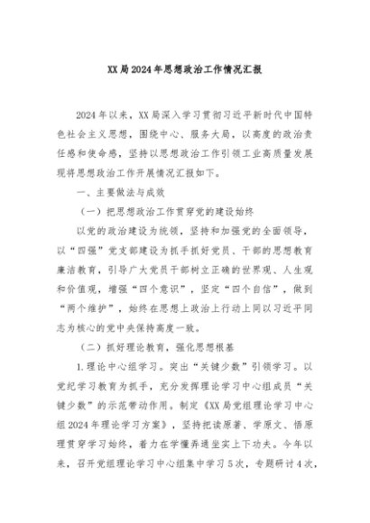 / 【七哥公文】2024年:XX局2024年思想政治工作情况汇报+更多免费公文+VX:QiGeGongWen2024