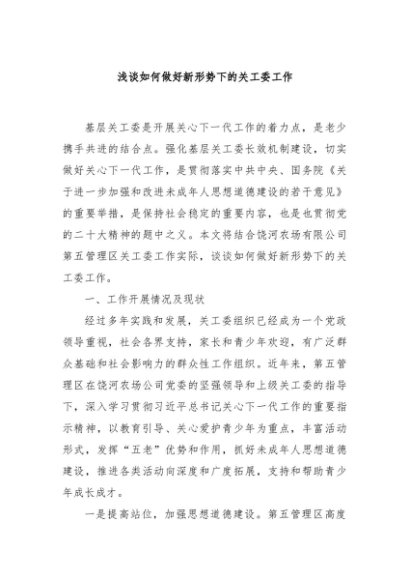/ 【七哥公文】2024年:浅谈如何做好新形势下的关工委工作+更多免费公文+VX:QiGeGongWen2024
