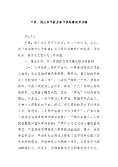 / 【七哥公文】2024年:中秋、国庆双节前夕单位领导廉政讲话稿+更多免费公文+VX:QiGeGongWen2024