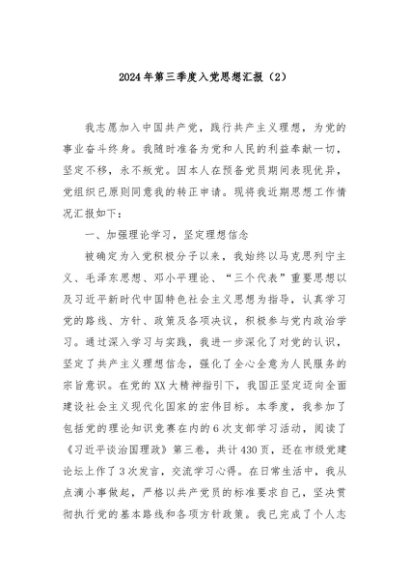/ 【七哥公文】2024年:2024年第三季度入党思想汇报(2)+更多免费公文+VX:QiGeGongWen2024
