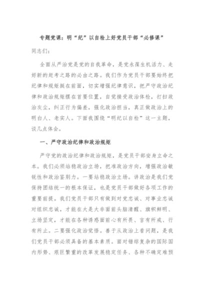 / 【七哥公文】2024年:专题党课:明“纪”以自检上好党员干部“必修课”+更多免费公文+VX:QiGeGongWen2024