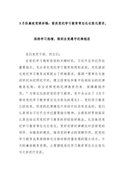 【七哥公文】2024年:9月份廉政党课讲稿:落实党纪学习教育常态化长效化要求,保持学习热情,做到自觉遵守纪律规范+更多免费公文+VX:QiGeGongWen2024