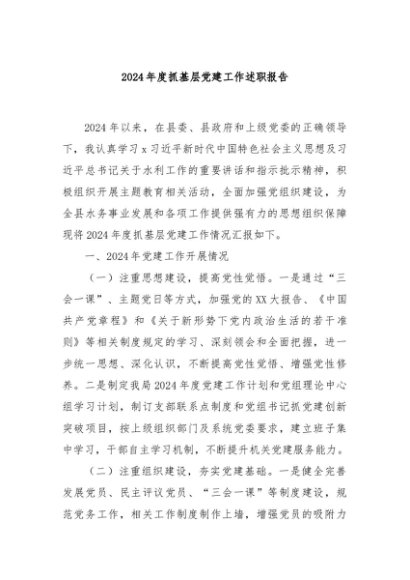 / 【七哥公文】2024年:2024年度抓基层党建工作述职报告+更多免费公文+VX:QiGeGongWen2024