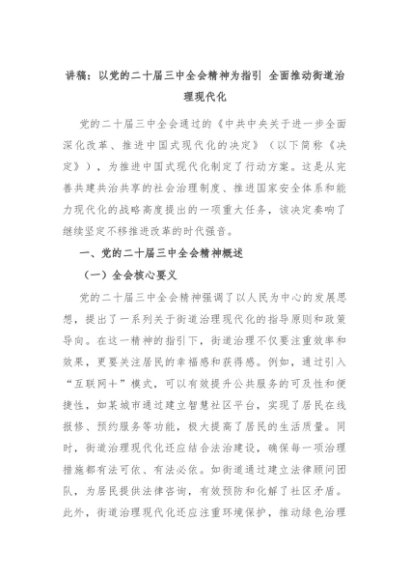 【七哥公文】2024年:讲稿:以党的二十届三中全会精神为指引 全面推动街道治理现代化+更多免费公文+VX:QiGeGongWen2024