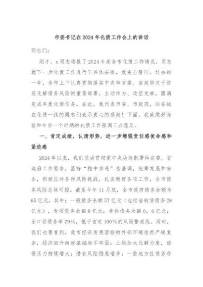 / 【七哥公文】2024年:市委书记在2024年化债工作会上的讲话+更多免费公文+VX:QiGeGongWen2024