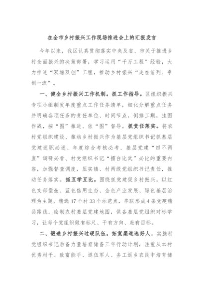 / 【七哥公文】2024年:在全市乡村振兴工作现场推进会上的汇报发言+更多免费公文+VX:QiGeGongWen2024