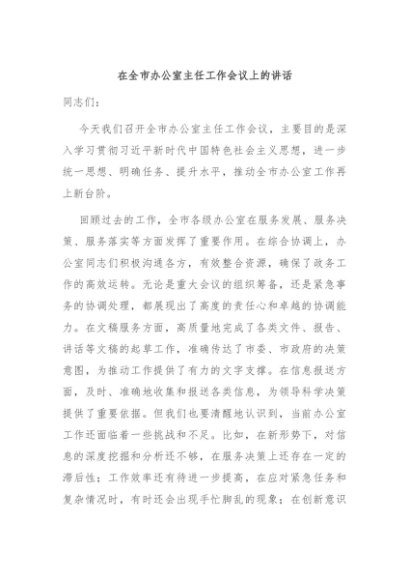 / 【七哥公文】2024年:在全市办公室主任工作会议上的讲话+更多免费公文+VX:QiGeGongWen2024