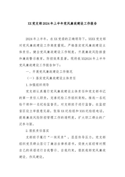 / 【七哥公文】2024年:XX党支部2024年上半年党风廉政建设工作报告+更多免费公文+VX:QiGeGongWen2024