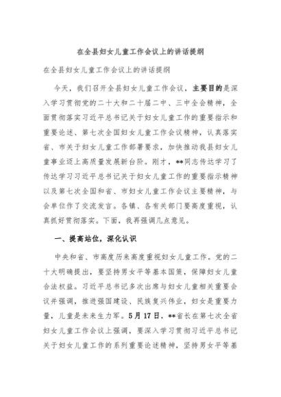 / 【七哥公文】2024年:在全县妇女儿童工作会议上的讲话提纲+更多免费公文+VX:QiGeGongWen2024