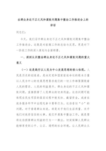 【七哥公文】2024年:在群众身边不正之风和腐败问题集中整治工作推进会上的讲话+更多免费公文+VX:QiGeGongWen2024