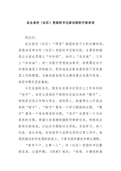 / 【七哥公文】2024年:在全县村(社区)党组织书记培训班的开班讲话+更多免费公文+VX:QiGeGongWen2024