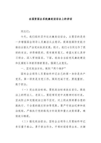 / 【七哥公文】2024年:在国资国企系统廉政谈话会上的讲话+更多免费公文+VX:QiGeGongWen2024