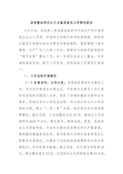 / 【七哥公文】2024年:县委整治形式主义为基层减负工作情况报告+更多免费公文+VX:QiGeGongWen2024