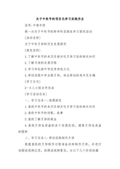 / 【七哥公文】2024年:关于中秋节的项目化学习实践作业+更多免费公文+VX:QiGeGongWen2024