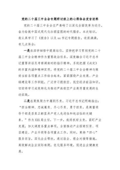 / 【七哥公文】2024年:党的二十届三中全会专题研讨班上的心得体会发言材料+更多免费公文+VX:QiGeGongWen2024