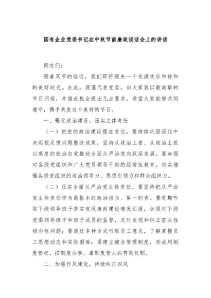 / 【七哥公文】2024年:国有企业党委书记在中秋节前廉政谈话会上的讲话+更多免费公文+VX:QiGeGongWen2024