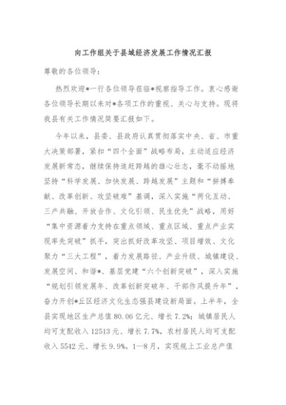 / 【七哥公文】2024年:向工作组关于县域经济发展工作情况汇报+更多免费公文+VX:QiGeGongWen2024