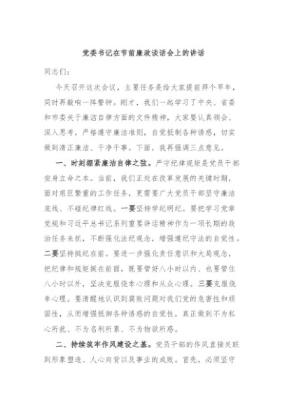 / 【七哥公文】2024年:党委书记在节前廉政谈话会上的讲话+更多免费公文+VX:QiGeGongWen2024