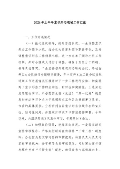 / 【七哥公文】2024年:2024年上半年意识形态领域工作汇报+更多免费公文+VX:QiGeGongWen2024