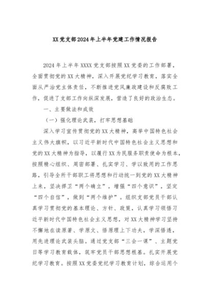/ 【七哥公文】2024年:XX党支部2024年上半年党建工作情况报告+更多免费公文+VX:QiGeGongWen2024