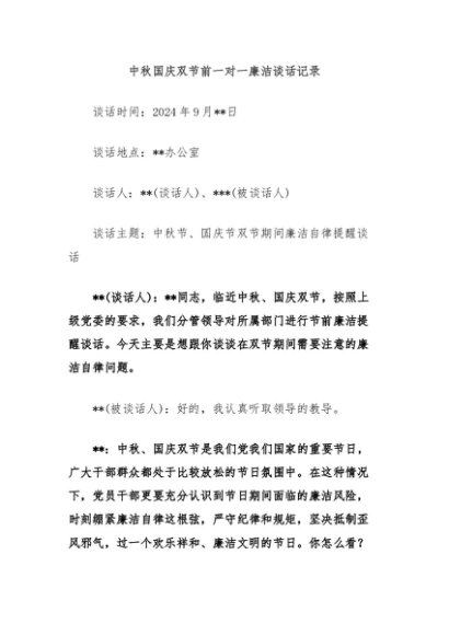 / 【七哥公文】2024年:中秋国庆双节前一对一廉洁谈话记录+更多免费公文+VX:QiGeGongWen2024