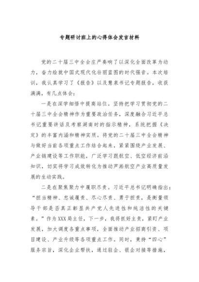 / 【七哥公文】2024年:专题研讨班上的心得体会发言材料+更多免费公文+VX:QiGeGongWen2024
