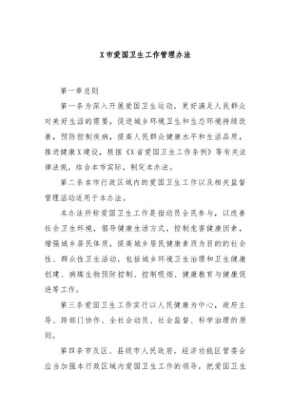 【七哥公文】2024年:X市爱国卫生工作管理办法+更多免费公文+VX:QiGeGongWen2024