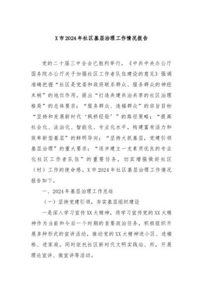 / 【七哥公文】2024年:X市2024年社区基层治理工作情况报告+更多免费公文+VX:QiGeGongWen2024