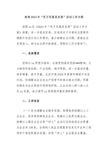 / 【七哥公文】2024年:街道2024年“双万双服促发展”活动工作方案+更多免费公文+VX:QiGeGongWen2024