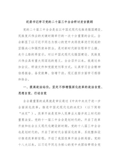/ 【七哥公文】2024年:纪委书记学习党的二十届三中全会研讨发言提纲+更多免费公文+VX:QiGeGongWen2024