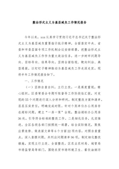 / 【七哥公文】2024年:整治形式主义为基层减负工作情况报告+更多免费公文+VX:QiGeGongWen2024