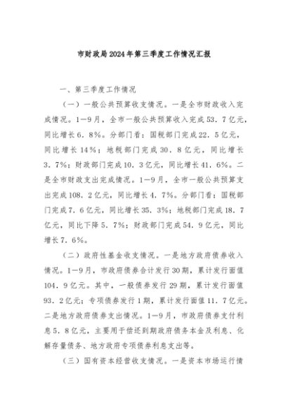 / 【七哥公文】2024年:市财政局2024年第三季度工作情况汇报+更多免费公文+VX:QiGeGongWen2024