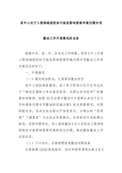 【七哥公文】2024年:某中心关于工程领域招投标不规范影响营商环境问题专项整治工作开展情况的总结+更多免费公文+VX:QiGeGongWen2024