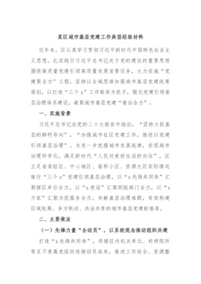 / 【七哥公文】2024年:某区城市基层党建工作典型经验材料+更多免费公文+VX:QiGeGongWen2024