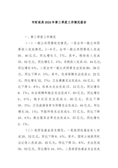 / 【七哥公文】2024年:市财政局2024年第三季度工作情况报告+更多免费公文+VX:QiGeGongWen2024