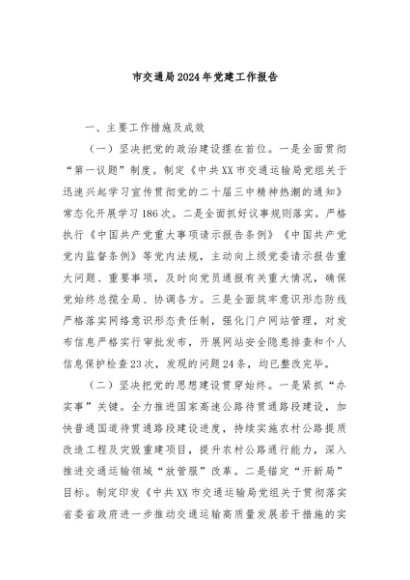 / 【七哥公文】2024年:市交通局2024年党建工作报告+更多免费公文+VX:QiGeGongWen2024