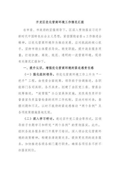 / 【七哥公文】2024年:开发区优化营商环境工作情况汇报+更多免费公文+VX:QiGeGongWen2024