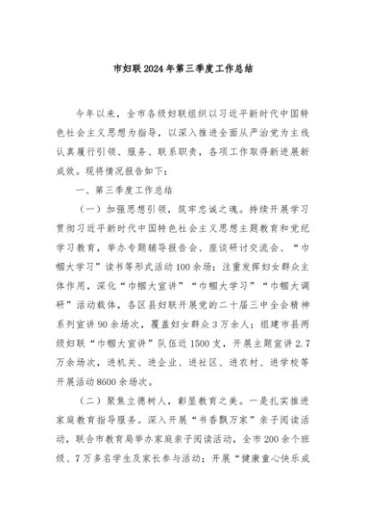 / 【七哥公文】2024年:市妇联2024年第三季度工作总结+更多免费公文+VX:QiGeGongWen2024