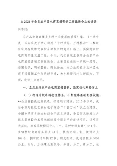 【七哥公文】2024年:在2024年全县农产品电商直播营销工作推进会上的讲话+更多免费公文+VX:QiGeGongWen2024