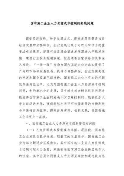 【七哥公文】2024年:国有施工企业人力资源成本控制的实践问题+更多免费公文+VX:QiGeGongWen2024