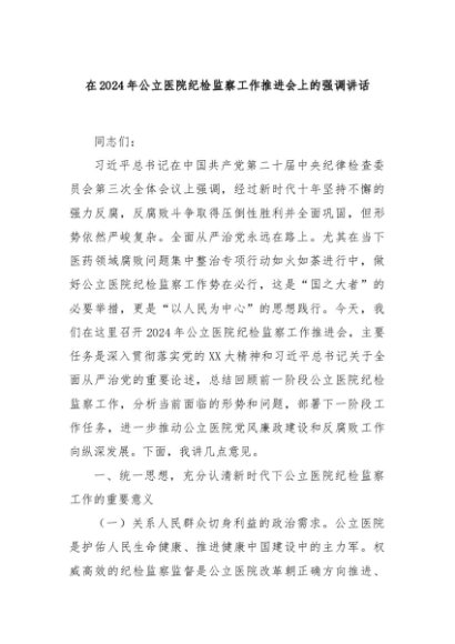 【七哥公文】2024年:在2024年公立医院纪检监察工作推进会上的强调讲话+更多免费公文+VX:QiGeGongWen2024