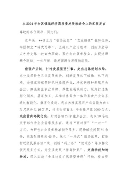 【七哥公文】2024年:在2024年全区镇域经济高质量发展推进会上的汇报发言+更多免费公文+VX:QiGeGongWen2024