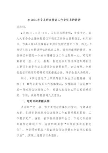 / 【七哥公文】2024年:在2024年全县群众信访工作会议上的讲话+更多免费公文+VX:QiGeGongWen2024