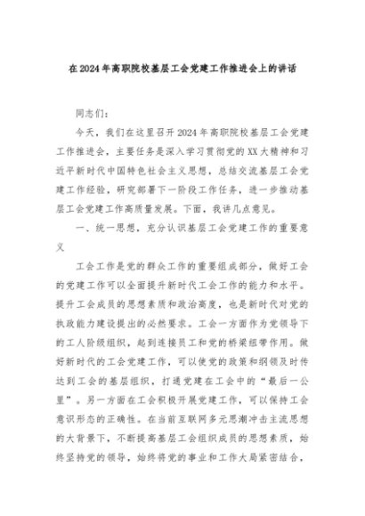 【七哥公文】2024年:在2024年高职院校基层工会党建工作推进会上的讲话+更多免费公文+VX:QiGeGongWen2024