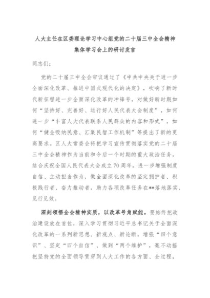 【七哥公文】2024年:人大主任在区委理论学习中心组党的二十届三中全会精神集体学习会上的研讨发言+更多免费公文+VX:QiGeGongWen2024