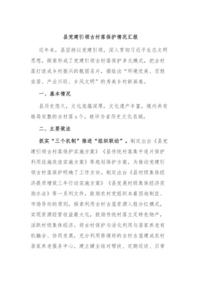 / 【七哥公文】2024年:县党建引领古村落保护情况汇报+更多免费公文+VX:QiGeGongWen2024
