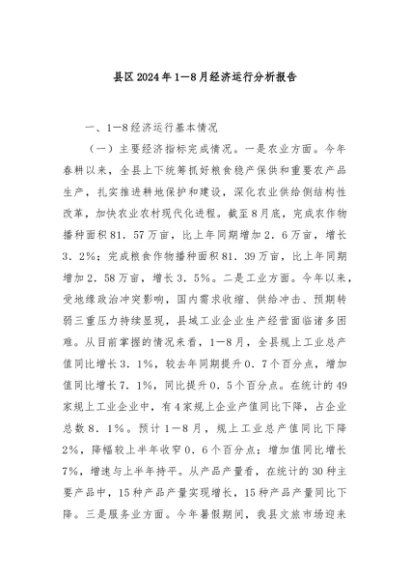 / 【七哥公文】2024年:县区2024年1-8月经济运行分析报告+更多免费公文+VX:QiGeGongWen2024